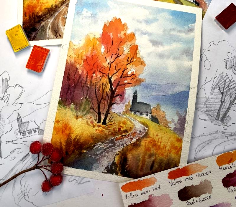 Skorzystaj z biblioteki bezpłatnych lekcji i naucz się podstaw szkicowania akwarelami w dogodnym czasie.